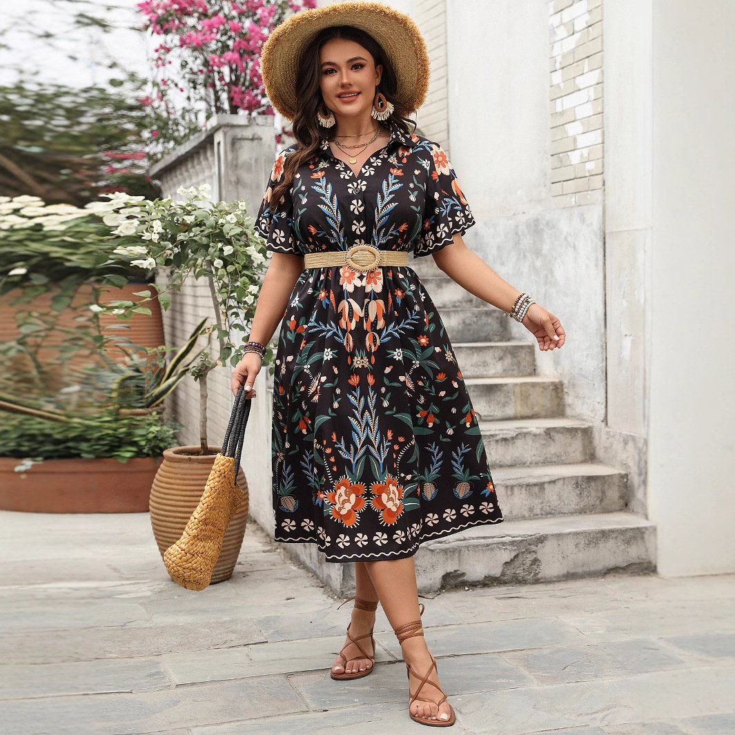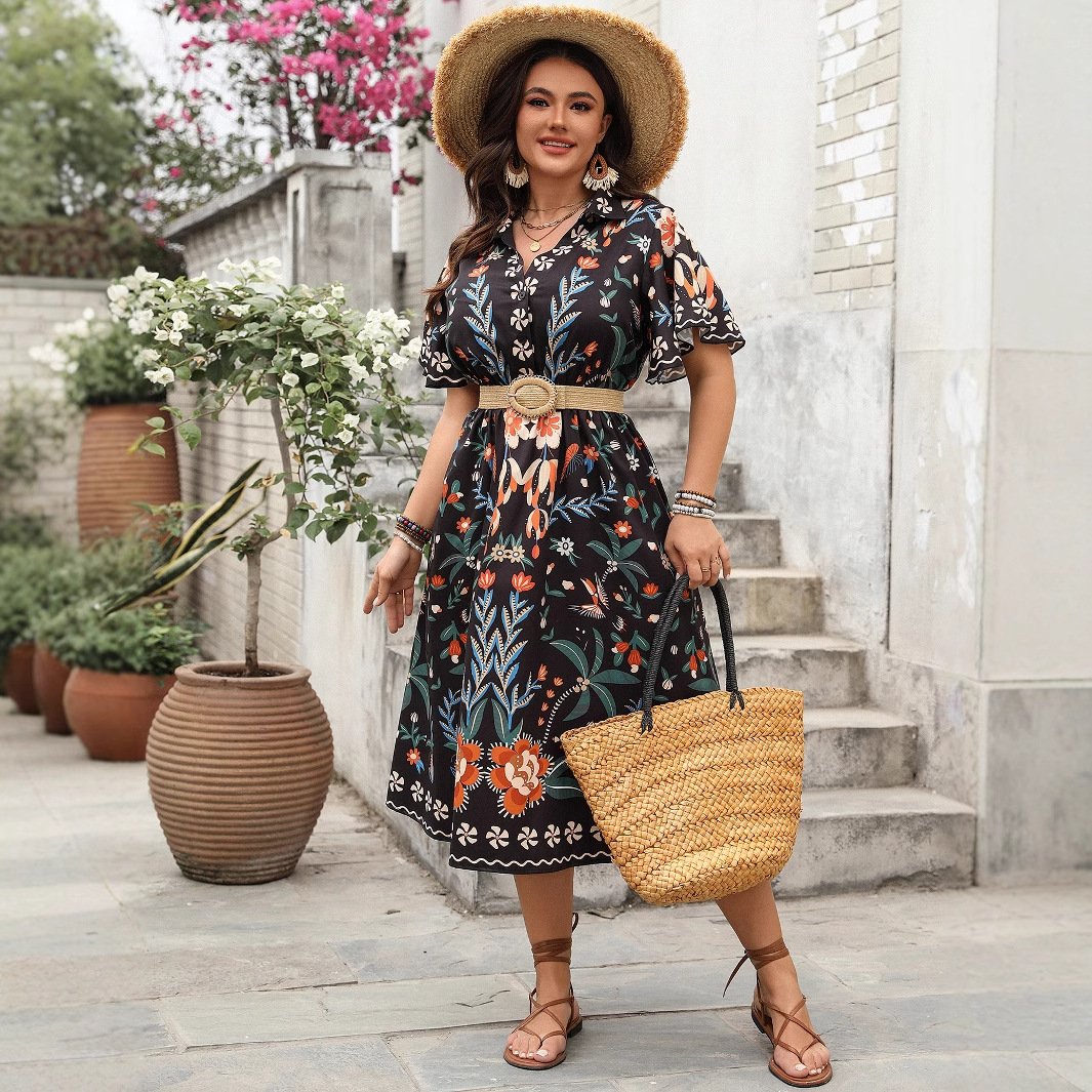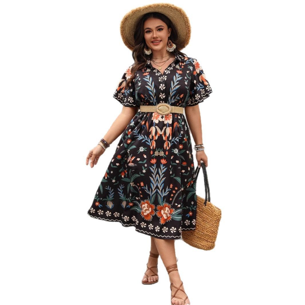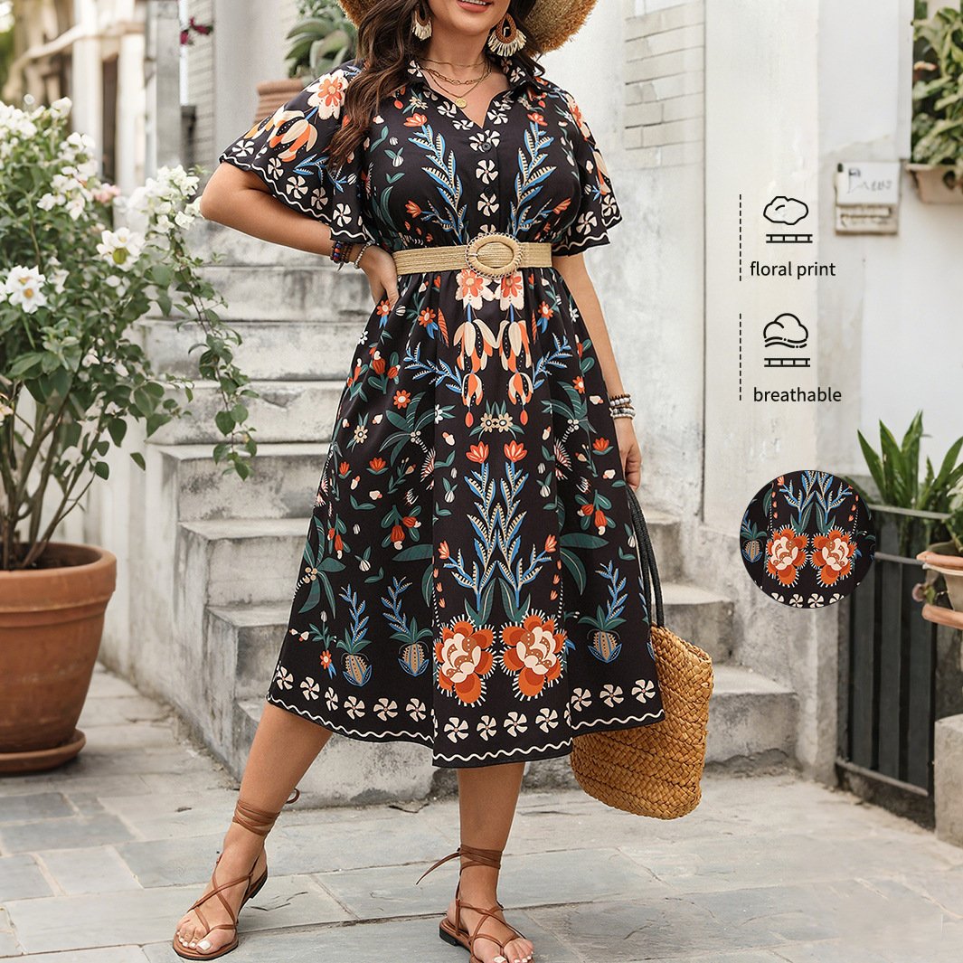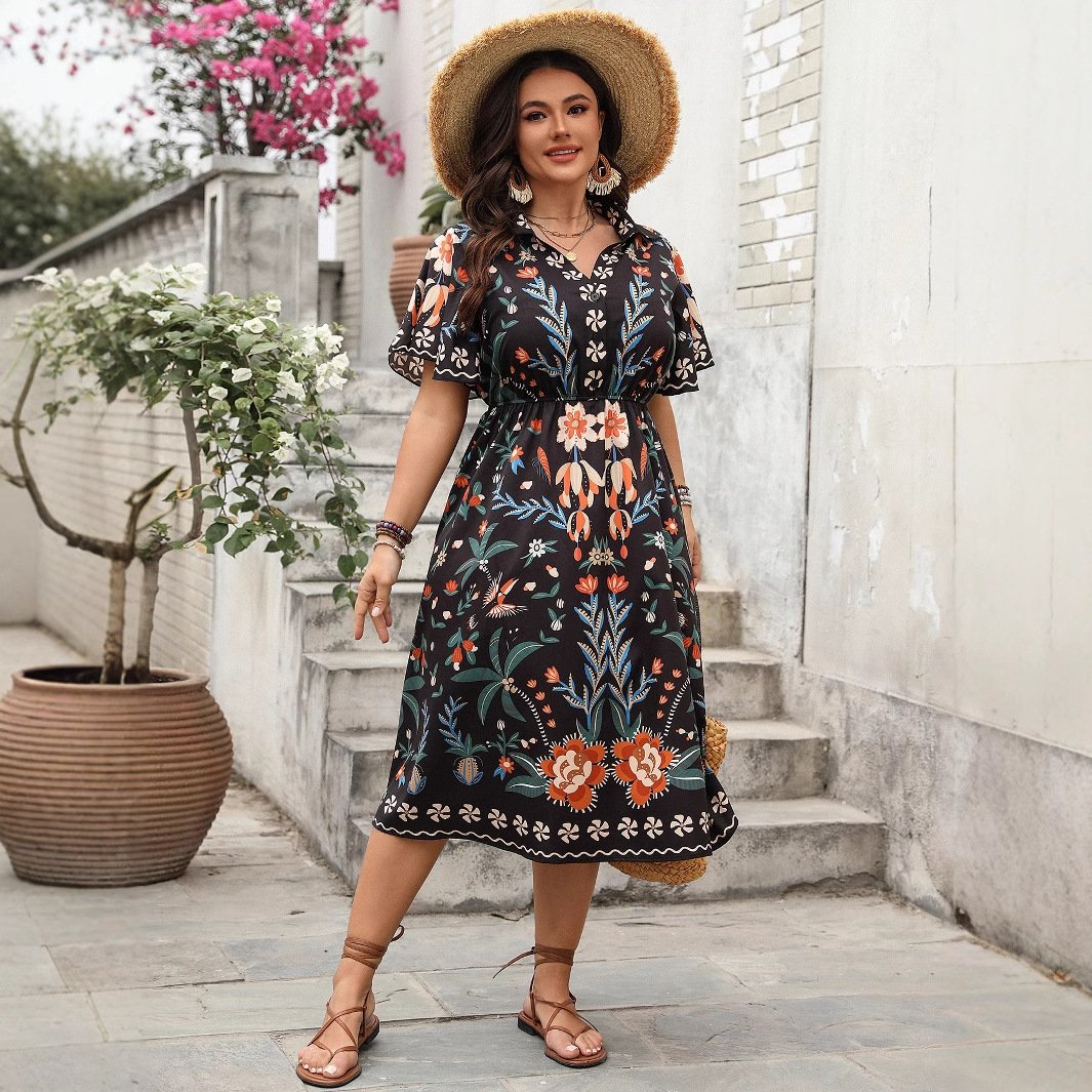 Discover elegance with our Bohemian Contrast V-Neck High Waist Maxi Dress, perfect for a variety of occasions. Crafted from lightweight chiffon, this dress features a chic floral print that elevates your style effortlessly.