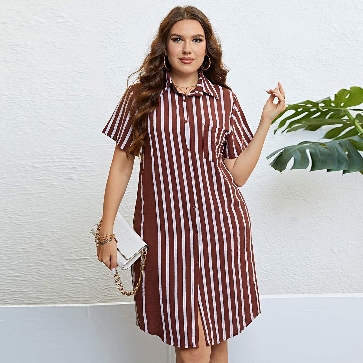 This stylish shirt dress features a chic striped design that’s perfect for various occasions. Made from high-quality polyester, it ensures comfort and breathability all day long. The irregular skirt shape adds a trendy touch to your wardrobe, while the classic polo collar brings a sophisticated flair.