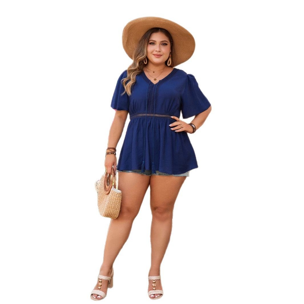 Available in a beautiful navy blue color, this top is designed for plus-size women (XL to 4XL), ensuring a perfect fit for everyone. Ideal for casual outings or everyday activities, this top combines comfort and style effortlessly.