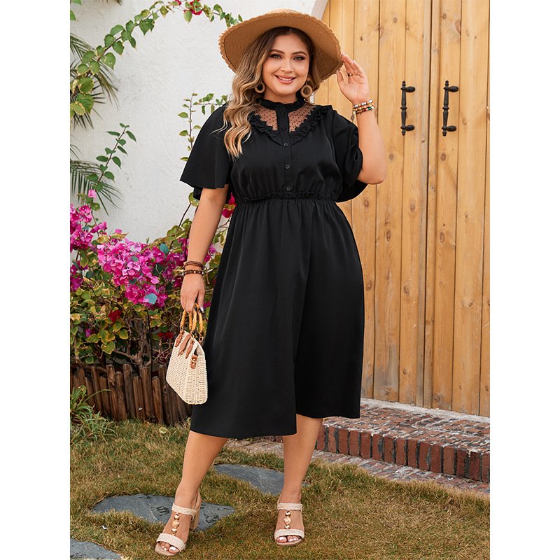 This stylish A-line dress features a classic solid color design, perfect for various occasions. The V-neckline adds a touch of sophistication, while the lace trim elevates the overall look. Made from high-quality polyester, this dress offers comfort and durability. Available in plus sizes to fit a range of body types.