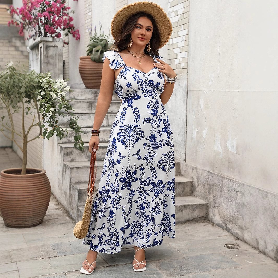 This floral print maxi dress combines style and comfort, making it a versatile addition to your wardrobe. Its elegant silhouette and lightweight fabric make it ideal for summer outings or special occasions.