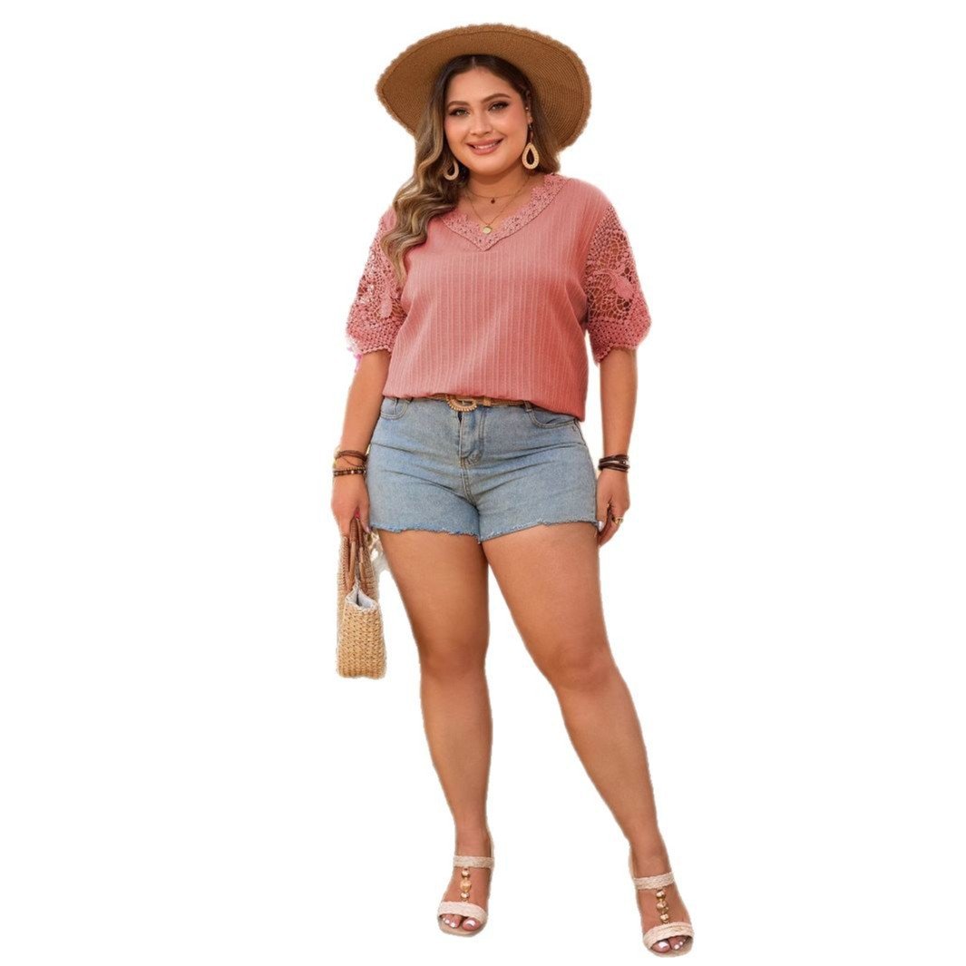 This stylish V-neck T-shirt is perfect for a chic and casual look. The hollow printing design adds a touch of uniqueness, making it a standout piece in your wardrobe. Made from high-quality polyester, it ensures comfort and durability.