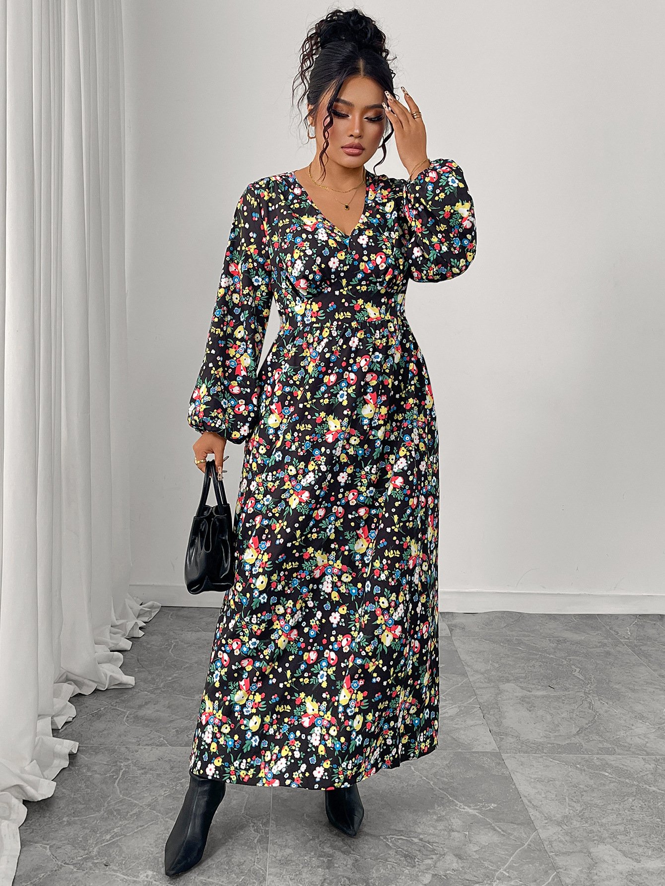 Stay stylish and elegant with our Printed V-Neck High-Waist Loose Maxi Dress. This dress features a beautiful floral print and is made from high-quality polyester, ensuring comfort and durability. Perfect for any occasion, whether at work or a casual outing.