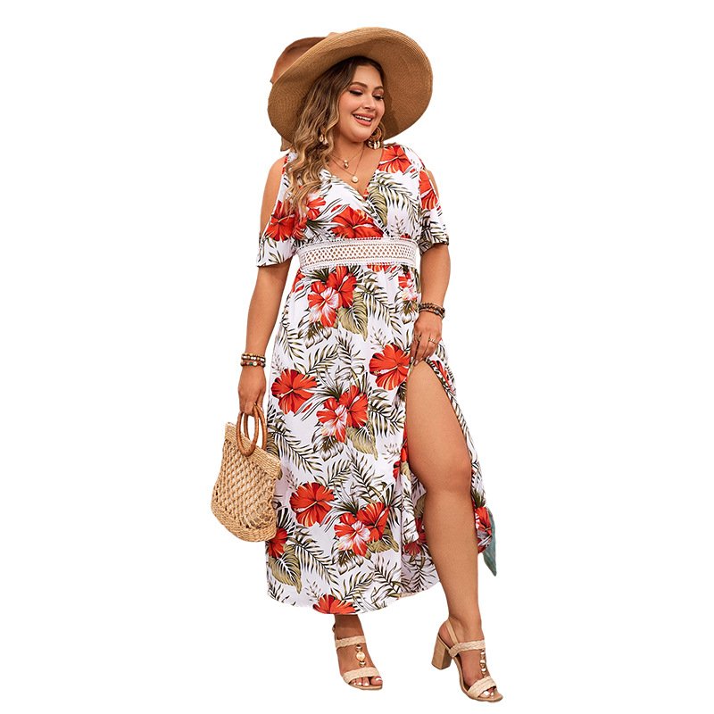 This stunning off-shoulder dress is perfect for beach outings and casual gatherings. Made from high-quality woven polyester fabric, it offers both comfort and style. The loose fit allows for easy movement, making it ideal for warm-weather events. Its elegant V-neck design and short sleeves add a touch of sophistication to your look. Available in plus sizes for the perfect fit.